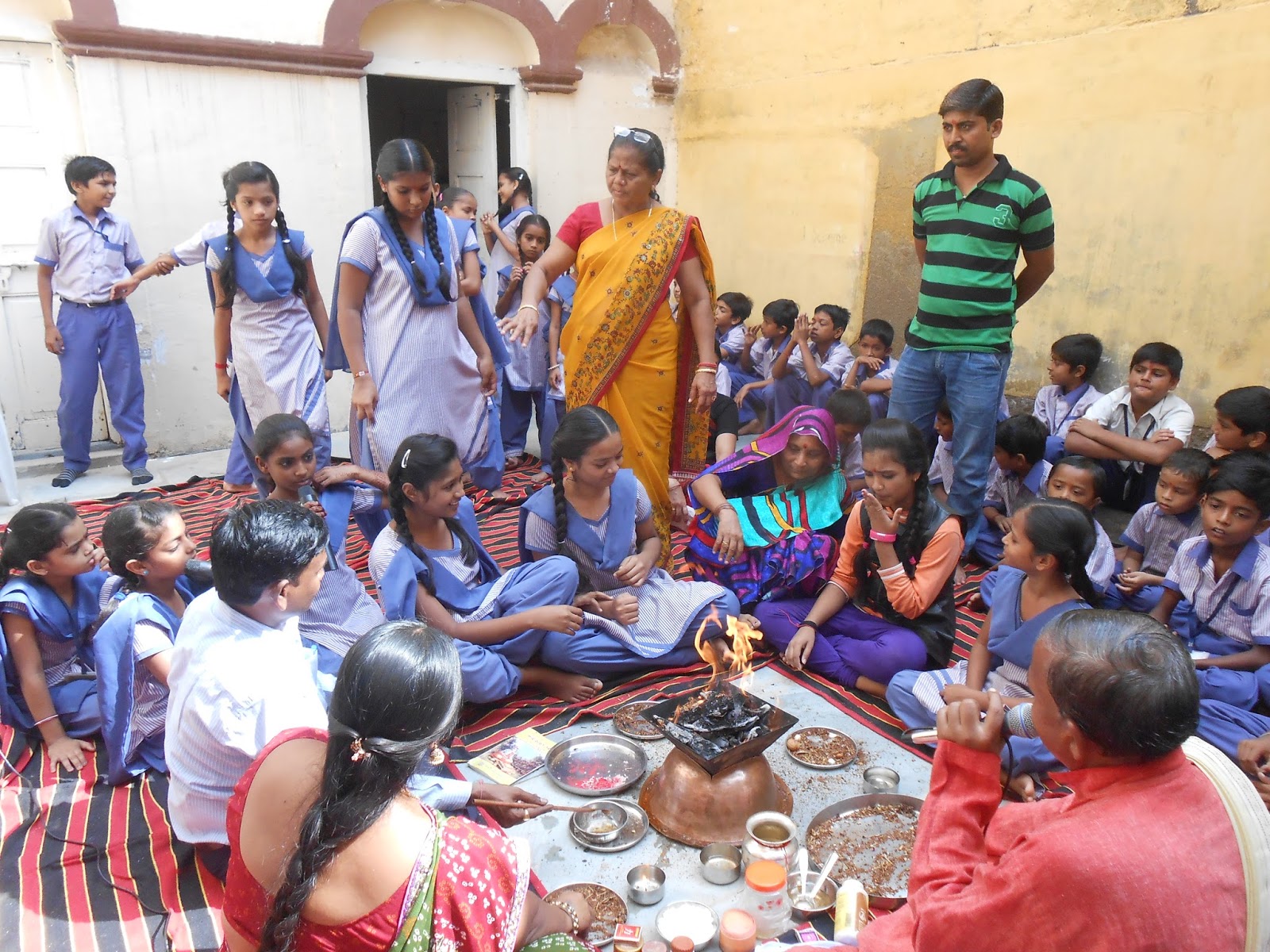 ગાયત્રી યજ્ઞનું આયોજન , અમારી શાળા - શ્રી નાનજી કાલીદાસ કન્યાશાળા, પોરબંદર